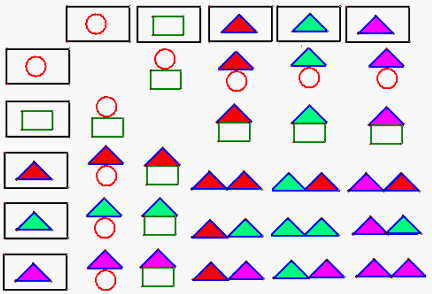 但實際上因為卡片是沒有顏色的,所以只要是取出的卡片相同,那么拼出的圖形就是一樣的,所以實際上只有10種結果.(如下面的圖形所示)