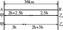 36 km的A、B兩地相向而行.如果甲比乙先走2 h,那么他們在乙出發(fā)2.5 h后相遇;如果乙比甲先走2 h,那么他們在甲出發(fā)3 h后相遇,請你求出甲、乙兩人的速度.|