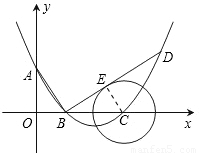 (2)過(guò)點(diǎn)B作線段AB的垂線交拋物線于點(diǎn)D,如果以點(diǎn)C為圓心的圓與直線BD相切,請(qǐng)判斷拋物線的對(duì)稱軸l與⊙C有怎樣的位置關(guān)系,并給出證明;