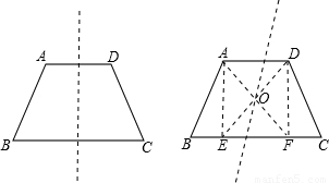 方法二:過(guò)A、D作AE⊥BC,DF⊥BC,垂足E、F,連接AF、DE相交于O,過(guò)點(diǎn)O任意作直線即為梯形的二分線.
