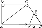 如圖,在直角梯形ABCD中,AB∥DC,∠D=90°,AC⊥BC,AB=10cm,BC=6cm,F(xiàn)點以2cm/秒的速度在線段AB上由A向B勻速運動,E點同時以1cm/秒的速度在線段BC上由B向C勻速運動,設運動時間為t秒(0<t<5).