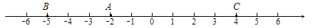 ⑴ 以郵局為原點(diǎn),以向北方向?yàn)檎较?用1cm表示1km,畫(huà)出數(shù)軸,并在該數(shù)軸上表示出A、B、C三個(gè)村莊的位置;