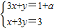 【答案】分析:先解關(guān)于關(guān)于x,y的二元一次方程組的解集,其解集由a表示;然后將其代入x+y<2,再來解關(guān)于a的不等式即可.