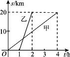 甲、乙二人沿相同的路線由A到B勻速行進,A,B兩地間的路程為20 km.他們行進的路程s(km)與甲出發(fā)后的時間t(h)之間的函數(shù)圖像如圖所示,根據(jù)圖像信息,下列說法正確的是