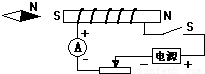 點(diǎn)評(píng):本題考查了磁極間的相互作用規(guī)律、電流表的接法、電流的方向和右手螺旋定則的使用.利用右手螺旋定則既可由電流的方向判定磁極磁性,也能由磁極極性判斷電流的方向和線圈的繞法.