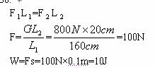 如圖26所示,獨(dú)輪小推車(chē)車(chē)斗和車(chē)內(nèi)的煤總重800N,可視為作用于B點(diǎn),車(chē)軸O為支點(diǎn)。將車(chē)把抬起時(shí),工人師傅用力F多大?將車(chē)把沿著力F的方向抬起10cm時(shí),作用在車(chē)把上的力F做多少功?