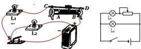 (2)用導(dǎo)線只連接C、D,則電流通過燈 ,它們是 聯(lián)的。