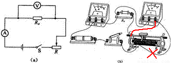 【答案】分析:(1)根據(jù)(a)中電路圖,順著電流的方向連接(b)中的實(shí)物圖,電流表測(cè)干路電流,電壓表測(cè)待測(cè)電阻Rx兩端的電壓,發(fā)現(xiàn)電壓表的連接出現(xiàn)了問(wèn)題;