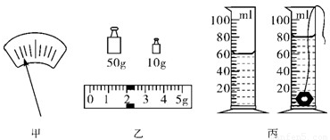 (2)圖乙中天平右盤中砝碼的質量為50g+10g=60g,游碼在標尺上的示數(shù)為2g,左盤中零件的質量為m=60g+2g=62g;