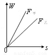 【答案】分析:分析圖象,取相同的距離s,得出兩個力做功的大小關(guān)系,再根據(jù)W=Fs分析兩個力的大小關(guān)系.