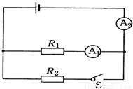 如圖所示的電路中,電源電壓為12伏,S斷開時,A2表的示數(shù)為0.3安;S閉合時,A2表的示數(shù)為0.4安,這時A1表的示數(shù)為