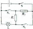 (2)當(dāng)開(kāi)關(guān)S1、S2都斷開(kāi)時(shí),電阻R1、R2和燈泡串聯(lián),等效電路圖如圖: