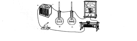 小明利用如圖所示的裝置探究電流產(chǎn)生的熱量與哪些因素有關:在兩個相同的燒瓶中裝滿煤油,瓶中各放置一根電阻絲,且R甲大于R乙,通電一段時間后,甲瓶玻璃管中的煤油上升得比乙高。該現(xiàn)象能夠說明電流產(chǎn)生的熱量與下列哪些因素有關 ( )