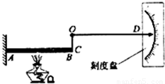 (2)他重新設(shè)計(jì)了如圖所示的裝置研究物體長(zhǎng)度隨溫度變化的情況.裝置中AB是粗細(xì)均勻的銅棒,COD是可繞O點(diǎn)轉(zhuǎn)動(dòng)的指針。實(shí)驗(yàn)時(shí),A端固定不動(dòng),指針C端緊靠在銅棒B端,當(dāng)用酒精燈給AB加熱時(shí),小明可以通過(guò)觀察_______________分析金屬棒受熱時(shí)長(zhǎng)度的變化.裝置中指針設(shè)計(jì)成CO段比OD段短,這對(duì)實(shí)驗(yàn)現(xiàn)象起到了________作用.
