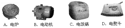 A.電爐          B.電動(dòng)機(jī)        C.電飯鍋        D.電熨斗