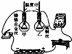 (2)為了便于比較兩種電阻絲通過電流后產(chǎn)生熱量的多少,甲、乙兩瓶中要裝入 相等、初溫相同的同種液體.
