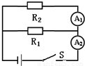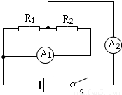 如圖所示的電路中,閉合開關S后,電流表A1的示數(shù)為0.2A,電流表A2的示數(shù)為 0.8A,此時,電阻R1和R2消耗的功率之比是( )
