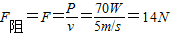 小華同學(xué)騎著自行車在平直公路上以5m/s的速度勻速行駛時的功率約為70W,則他騎車時所受的阻力約為
