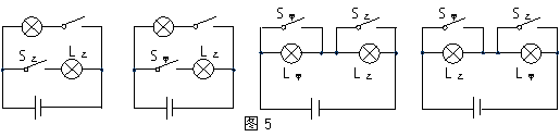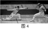 如圖4擊劍比賽中,甲的劍擊中乙的導(dǎo)電服,乙頭頂上的指示燈就會(huì)亮;乙的劍擊中甲的導(dǎo)電服,甲頭頂上的指示燈就會(huì)亮。這里劍相當(dāng)于“開關(guān)”,圖5中能反映上述比賽原理的電路圖是( )