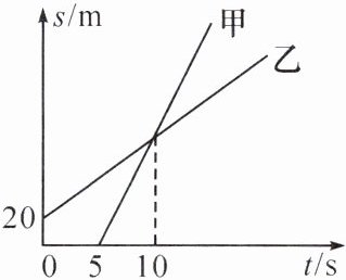 B.由圖像知,乙從t=0出發(fā),初始位置s=20m;甲從t=5s出發(fā),初始位置s=0m,故甲比乙晚出發(fā)5s,出發(fā)前相距20m,B正確;