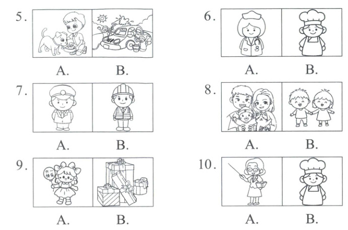 三、聽錄音,在正確的圖片下打“√”。(10分)