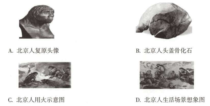 研究人類起源最可信的依據(jù)是實物證據(jù)。北京人頭蓋骨化石是遠古人類遺留的真實遺存,屬于第一手資料;北京人復(fù)原頭像、用火示意圖、生活場景想象圖均是后人根據(jù)化石等資料進行的復(fù)原或想象,屬于第二手資料。故最為可信的依據(jù)是北京人頭蓋骨化石。