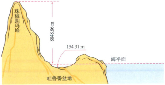 )米;吐魯番盆地的高度比海平面低 154.31 米,稱為海拔負(fù) 154.31 米,記作(
