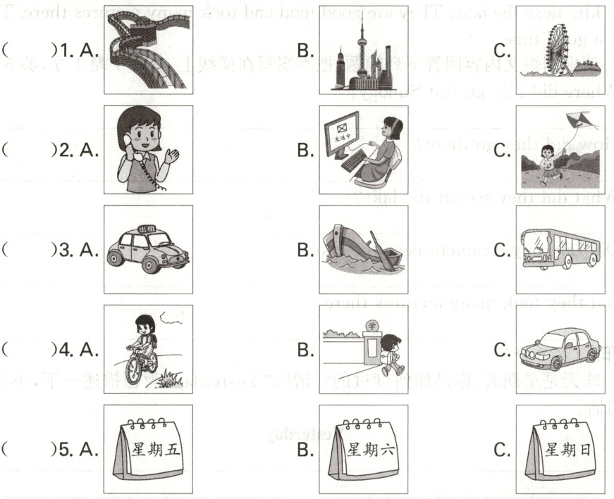Ⅰ. 聽句子,選圖片。請選出與所聽到的句子意思相符的圖片,并將該圖片的字母標(biāo)號填在括號內(nèi)。每個句子讀兩遍。(每小題 1 分,共 5 分)