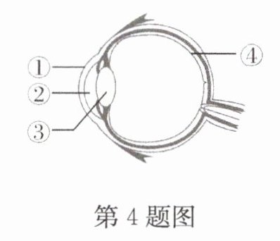 4. 眼球的結構如圖所示,下列有關敘述錯誤的是(