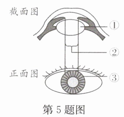 5. 眼睛的正面和截面結構如圖所示,下列相關說法錯誤的是(