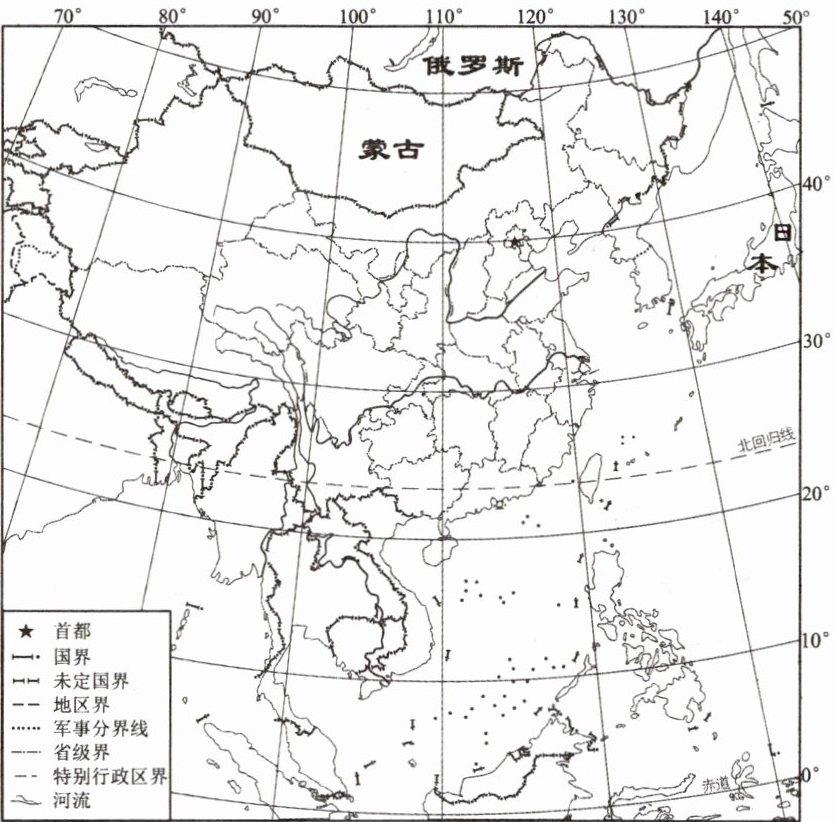 (2025·合肥)某欄目片頭介紹:“你見(jiàn)過(guò)什么樣的中國(guó)? 是960萬(wàn)平方千米的遼闊,還是300萬(wàn)平方千米的澎湃? 是四季輪轉(zhuǎn)的天地,還是冰與火演奏的樂(lè)章?” 讀中國(guó)的疆域及鄰國(guó)圖,完成1~3題。