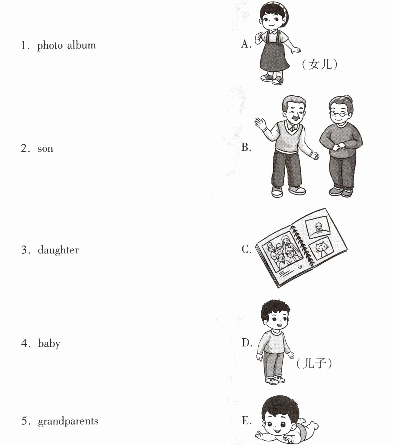 答案:1. photo album — C