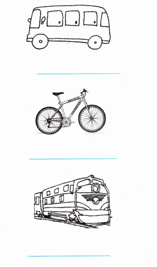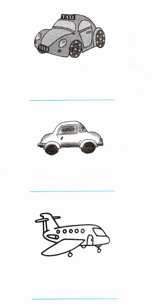 答案:bus; bike; train; taxi; car; plane