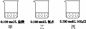 (2)若將甲溶液全部倒入乙中,所得的混合溶液的pH(填“>”、“<”或“=”) 丙溶液的pH.