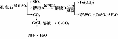 孔雀石為原料制備CuSO4·5H2O及CaCO3,步驟如下: