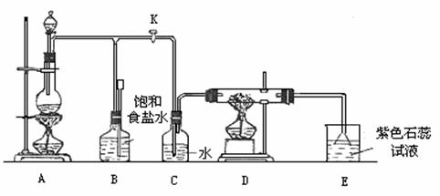 點燃D處酒精燈,連接上E裝置。Cl2通過C瓶后再進入D。D裝置的硬質(zhì)玻璃