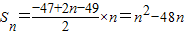【答案】分析:由an=2n-49可得數(shù)列{an}為等差數(shù)列,則可得,結(jié)合二次函數(shù)的性質(zhì)可求