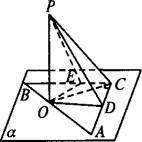 ∵PD=PE,PE⊥BC于E,PD⊥AC于D,∴PD、PE在平面a內(nèi)的射影分別為OD、OE,且OE=OD,OE⊥BC,OD⊥AC, 即四邊形ODCE中,OE=OD,且∠OEC=∠ODC=∠C=90°.∴四邊形ODCE為正方形,OC= 設(shè)OP=x,則 OC2=PC2-OP2=242-x2, ① OE2=PE2-OP2=(6 OC= 解①、②、③組成的方程組得x=12. (2)在Rt△POC中,sinPCO= ∴P點到平面a的距離為12.PC與平面a成的角為30°.