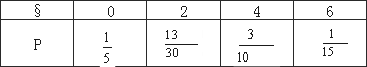 解:(1)設(shè)乙闖關(guān)成功的概率為 因?yàn)橐冶?dú)立闖關(guān),根據(jù)獨(dú)立事件同時(shí)發(fā)生的概率公式得: 解得 答:乙闖關(guān)成功的概率為 (2)團(tuán)體總分為4分,即甲、乙、丙三人中恰有2人過關(guān),而另外一人沒過關(guān). 設(shè)“團(tuán)體總分為4分”為事件A, 則 答:團(tuán)體總分為4分的概率為 (3)§=0,2,4,6 (1分) P(§=0)= P(§=2)= 由(2)P(§=4)= P(§=6)=