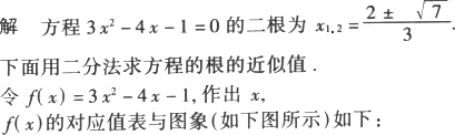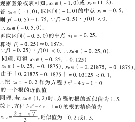 先用求根公式求出方程3x2-4x-1=0的解,然后再借助計算器或計算機(jī),用二分法求出這個方程的近似解.(精確到0.1)
