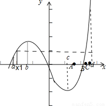 解答:解:∵(a,b),(c,d)都是函數(shù)f(x)的單調增區(qū)間,且x1∈(a,b),x2∈(c,d),且x1<x2