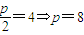 ∴拋物線y2=2px(p>0)的焦點是(4,0),