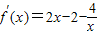 【答案】分析:由f(x)=x2-2x-4lnx,知,x>0,由>0,x>0,能求出函數f(x)=x2-2x-4lnx的單調遞增區(qū)間.