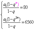 為正項(xiàng)等比數(shù)列,它的前n項(xiàng)和為80,其中數(shù)值最大的項(xiàng)為54,前2n項(xiàng)的和為6560,試求此數(shù)列的首項(xiàng)a1和公比q。