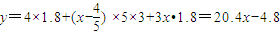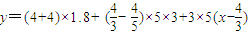 (2012•西區(qū)一模)某市居民自來(lái)水收費(fèi)標(biāo)準(zhǔn)如下:每戶每月用水不超過(guò)4噸時(shí),每噸收費(fèi)1.8元,當(dāng)用水超過(guò)4噸時(shí),超過(guò)部分每噸收費(fèi)3元.某月甲乙兩戶共交水費(fèi)y元,已知甲、乙兩戶用水量分別為5x,4x(噸)