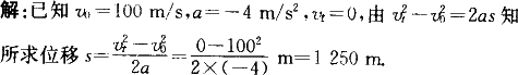 航天飛機著陸時速度很大,可用阻力傘使它減速.假設(shè)一架航天飛機在一條筆直的水平跑道上著陸,剛著陸時速度為100 m/s,在著陸的同時立即打開降落傘,加上地面的摩擦作用,產(chǎn)生大小為4 m/s2的加速度.研究一下,這條跑道至少要多長?