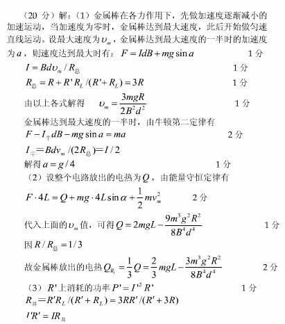 (3)若改變R的阻值,當(dāng)R′為何值時(shí),在金屬棒達(dá)到最大速度后, R′消耗的功率最大?消耗的最大功率為多少?
