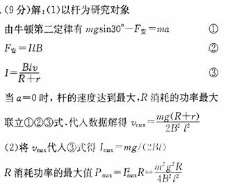 (1)金屬桿下滑過程中的最大速度。
