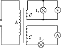 如圖所示,理想變壓器有三個(gè)線圈A、B、C,其中B、C的匝數(shù)分別為n2、n3,電壓表的示數(shù)為U,電流表的示數(shù)為I,L1、L2是完全相同的燈泡,根據(jù)以上條件可以計(jì)算出的物理量是