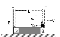 (2009?廣東)如圖所示,絕緣長方體B置于水平面上,兩端固定一對平行帶電極板,極扳間形成勻強電場E,長方體B的上表面光滑,下表面與水平面的動摩擦因數(shù)μ=0.05(設最大靜摩擦力與滑動摩擦力相同),B與極板的總質量mB=1.0kg.帶正電的小滑塊A質量mA=0.6kg,其受到的電場力大小F=1.2N.假設A所帶的電量不影響極板間的電場分布.t=0時刻,小滑塊A從B表面上的a點以相對地面的速度vA=1.6m/s向左運動,同時,B(連同極板)以相對地面的速度vB=0.40m/s向右運動.問(g取10m/s2